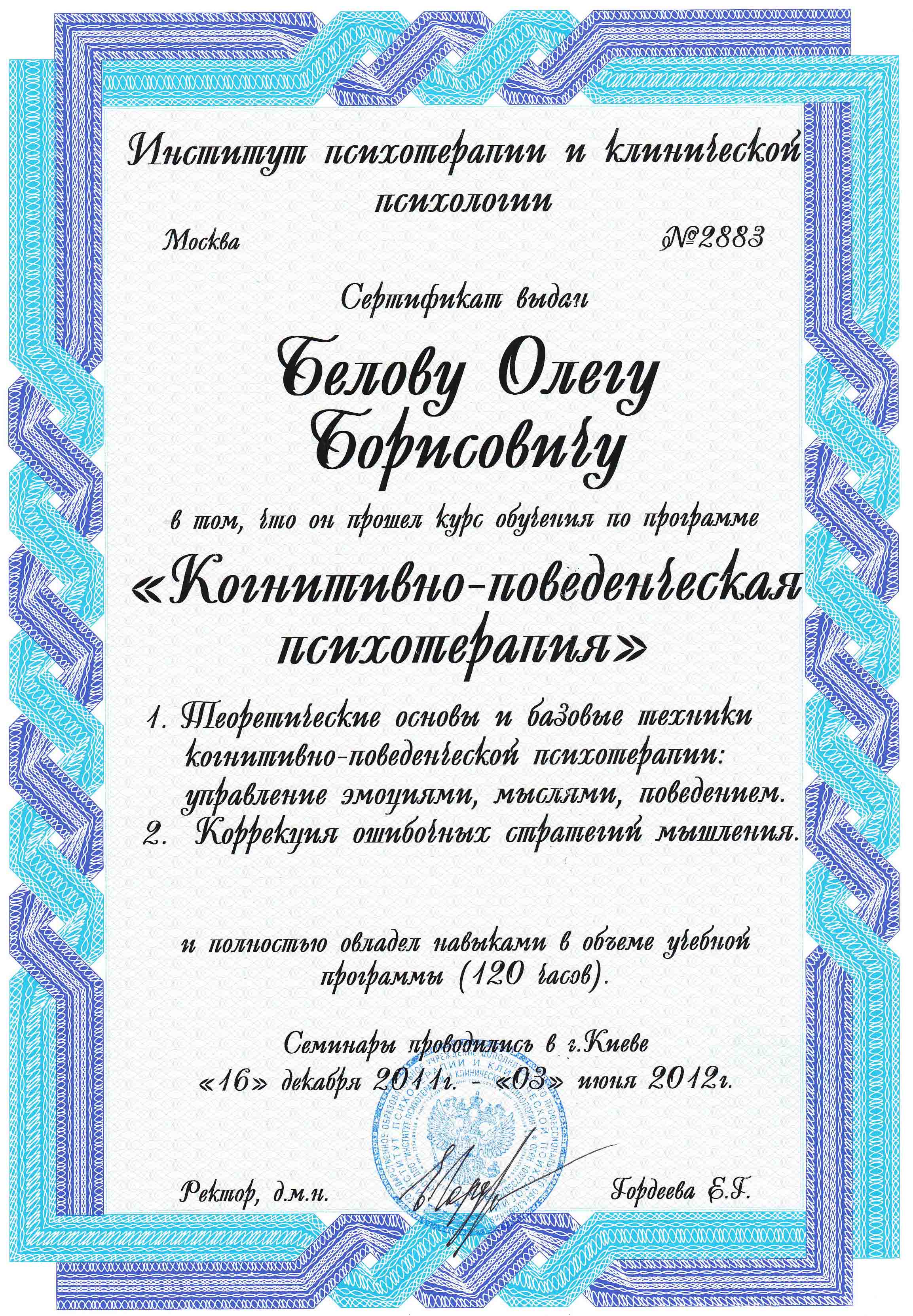 ВРАЧ-ПСИХОТЕРАПЕВТ, ПСИХОЛОГ, ПСИХИАТР – БЕЛОВ ОЛЕГ БОРИСОВИЧ