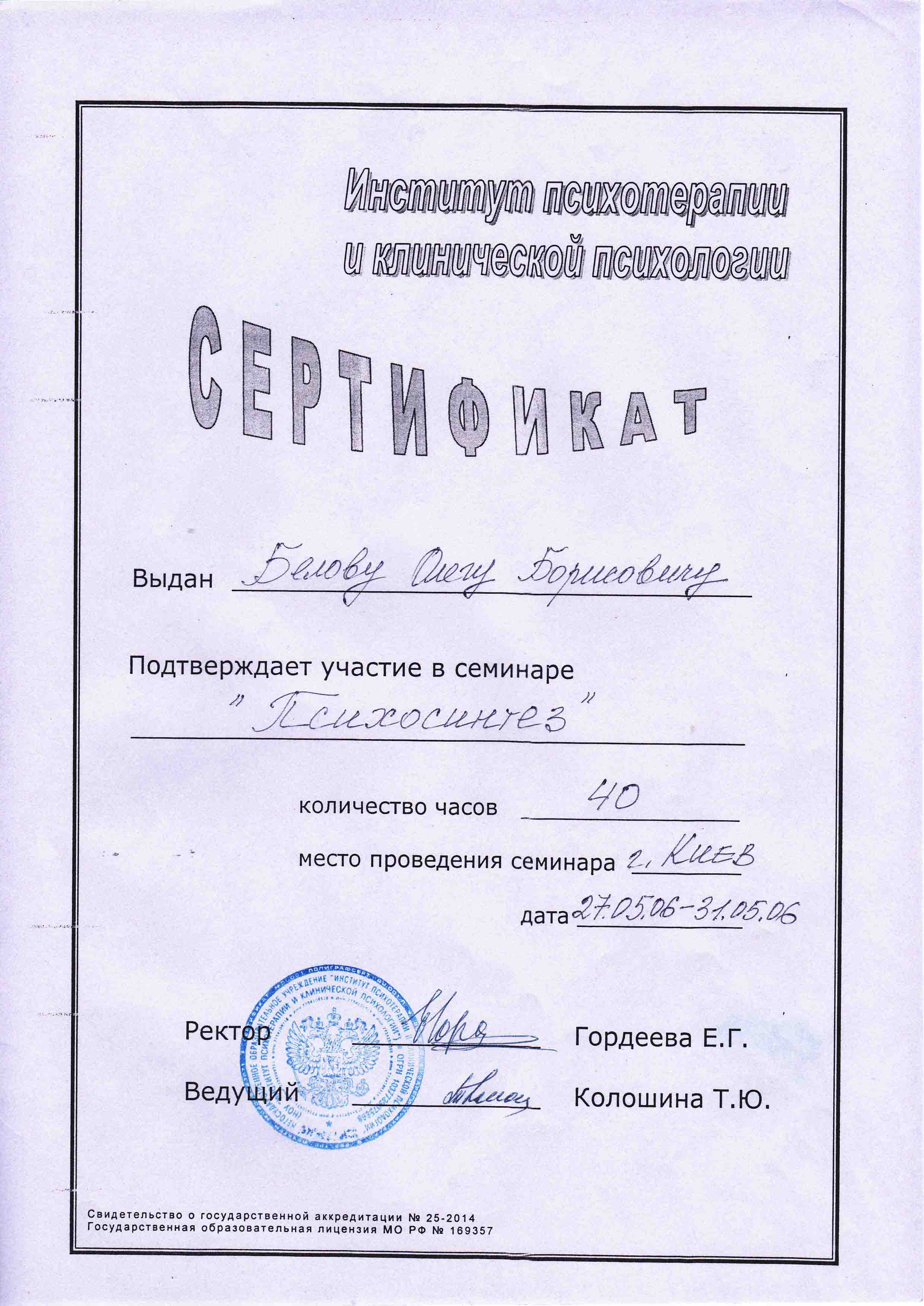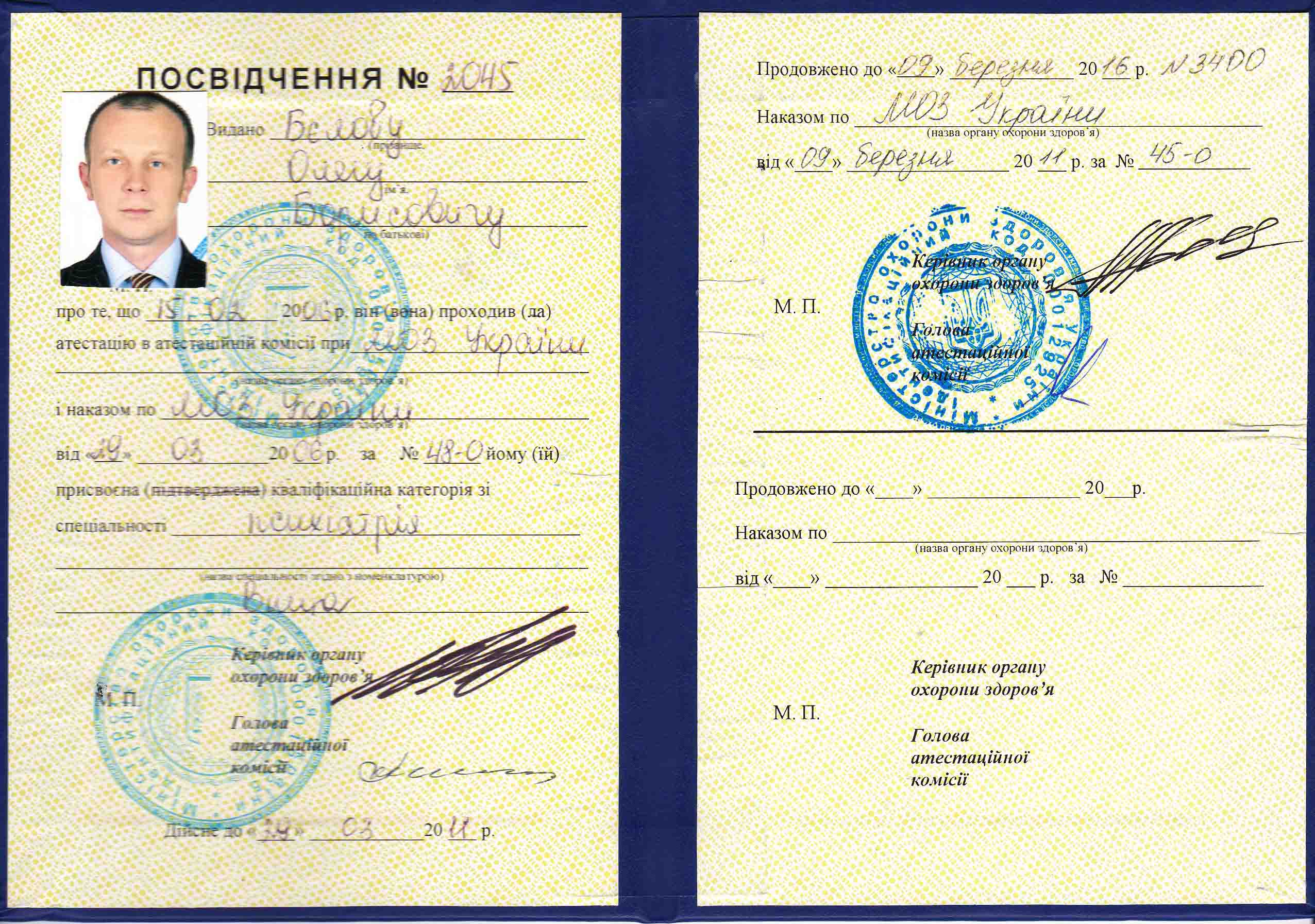 ВРАЧ-ПСИХОТЕРАПЕВТ, ПСИХОЛОГ, ПСИХИАТР – БЕЛОВ ОЛЕГ БОРИСОВИЧ
